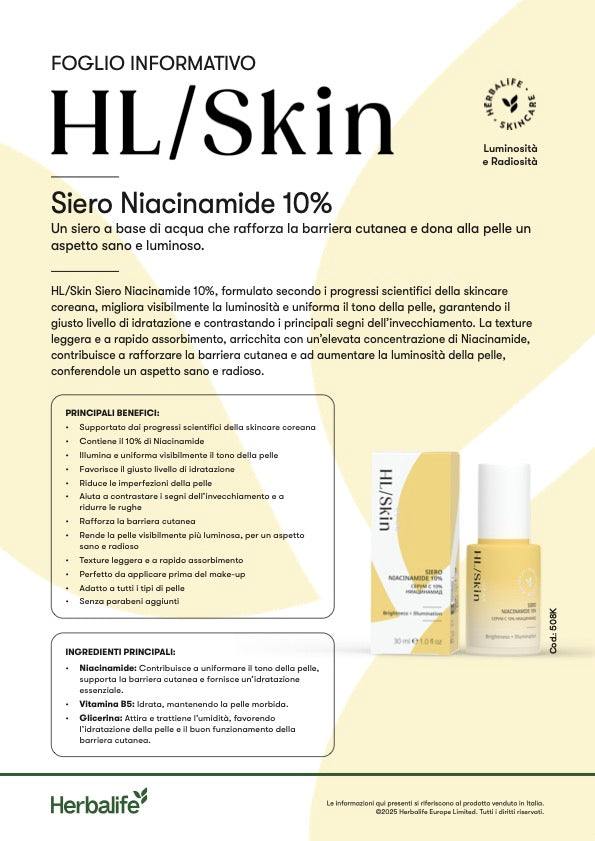 HL/Skin Siero Niacinamide 10% – Siero viso illuminante al 10% di Niacinamide (30 ml)